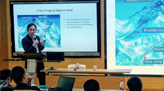 林教授的讲座从自身的科研家谱切入说明写作在科研生涯中的重要性。就科学写作的定义,以及写作的具体流程与方式等方面,林教授旁征博引,借助William Zinsser、Anne Lemott、Francis Darwin等多位作家和科学家的观点鼓励大家培养积极的写作心态,,并多次强调写作是科学研究工作的重头戏,是学习新知的不可缺少的过程,也是关乎未来职业发展一项重要的能力。通过写作,学者凝练思想、表达想法、传达知识,并且在塑造学术共同体的同时进一步超越学术圈的范畴进行知识的传播与分享。
