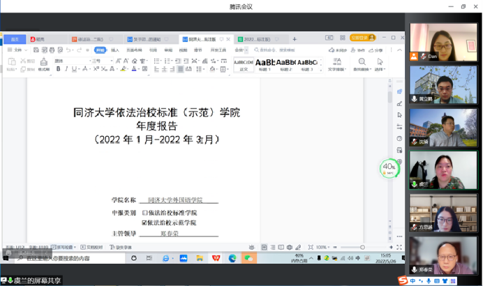 会上,虞兰老师针对学院提交的《best365中国官方网站依法治校标准(示范)学院年度报告》初稿有关内容提出了改进建议,并逐一解读了示范学院创建指标。随后,学院参会老师就建设过程中遇到的问题和解决方案展开了讨论。此次培训指导会让参会老师在制度体系建设、内部治理结构、依法依规办学、师生权益保障、法律法规宣传等方面的提升空间有了更深入的认识,对学院创建依法治校示范学院有了更明确的努力方向和更清晰的实施路径。