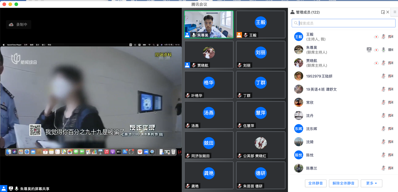 best365中国官方网站于6月7日下午邀请沪东高校派出所的朱警官和校保卫处的贾晓航老师,以线上讲座的方式为本院师生开展了一场防电信诈骗和消防安全讲座。公司党委书记郑春荣、党委副书记兼纪委书记黄立鹤,全院教职工和员工安全员代表参加了讲座。