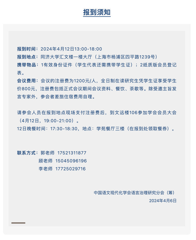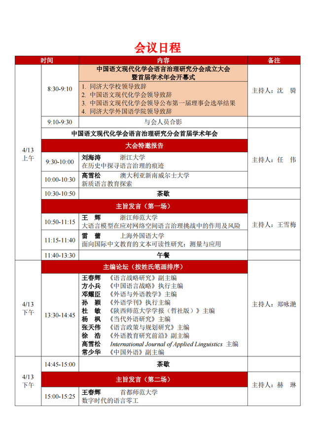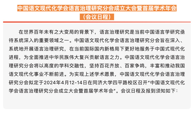 【会议日程】中国语文现代化学会语言治理研究分会成立大会暨首届学术年会