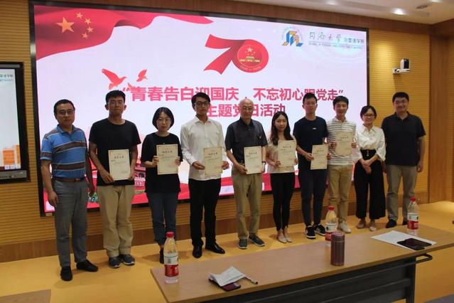 外国语公司党委副书记(主持工作)谭晓赟老师讲话,他对师生们敏锐的观察、自信的表达和充沛的才情表示肯定,以一代代同济人报效祖国、把论文写在祖国大地上的事迹,鼓励青年学子不忘初心,心怀理想,牢记使命,担当大任,知行合一,服务祖国和人民,以青春之奋斗献礼新中国70周年华诞!