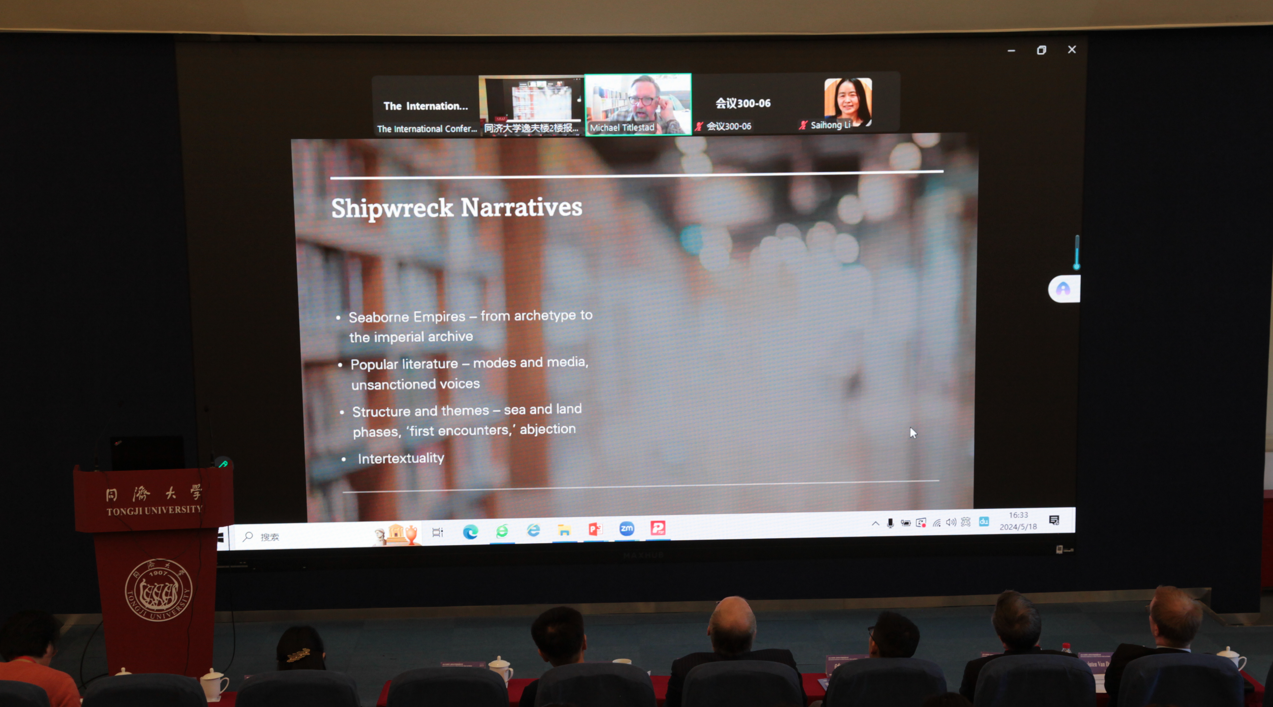 18日下午的主旨发言以微观视角的理论研读和作品分析为主,探讨世界文学的多样性。王斌华教授以当代经典小说《解密》英译本的接受和传播为例,讨论翻译在文学世界性塑造中的作用。陈靓教授将美国本土裔文学家杰拉德·维兹诺笔下的“恶作剧者”的本土裔文化形象与西方文学经典批评形式结合,探索一种跨文化的、对话性的批评策略。Michael Titlestad教授回溯了自己对1795年“朱诺”号船只残骸的考查,并分析了船长麦基和幸存者在“海难叙事”上体现的观念差异。Sandro Jung教授聚焦经典作品“阿尔卑斯牧羊女阿德莱德”的跨媒介传播,探讨了绘本、刺绣等不同媒介的不同呈现方法和叙事身份。李赛红教授使用莫娜·贝克的叙事理论,对比毛姆作品《兰贝斯的莉莎》的不同中译本,强调了翻译与社会规范、文化刻板印象之间的相互作用。