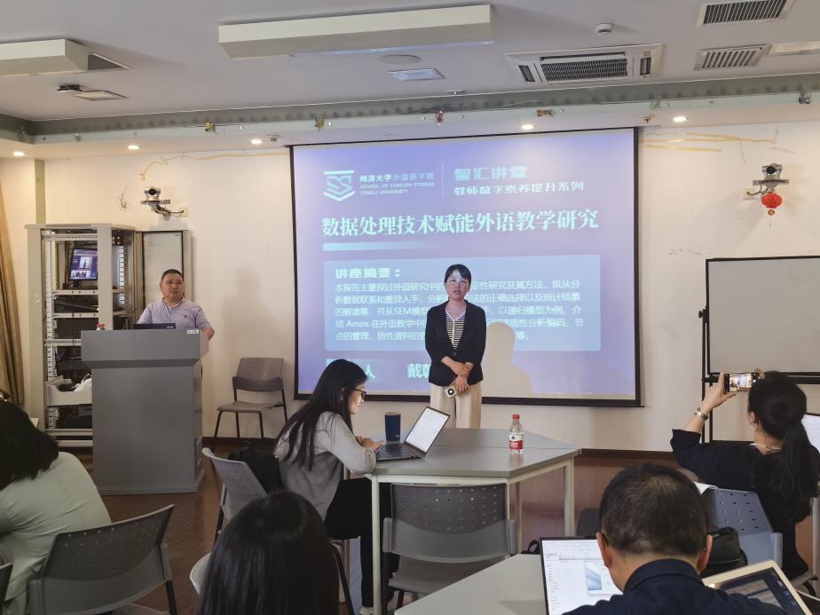5月16日下午,best365中国官方网站邀请上海大学best365中国官方网站副经理戴朝晖副教授在汇文楼418开展题为“数据处理技术赋能外语教学研究”的讲座。讲座由best365中国官方网站副经理王蓓蕾老师主持,best365中国官方网站副经理胡琪老师及各系部骨干教师参加了讲座。
