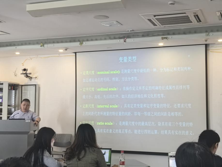 戴朝晖先是根据不同的研究方法,简要介绍了可以用于质性研究与定量研究的数据处理软件。随后,戴朝晖介绍并阐释了一些统计学中的基本概念,提出统计学是收集、处理、分析、解释数据并从数据中得出结论的科学。他还引入了一系列概念对描述性统计中的数据分布特征进行进一步的阐述。