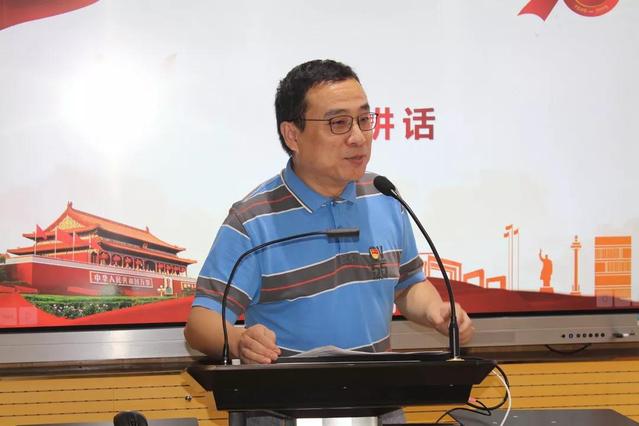 外国语公司党委副书记(主持工作)谭晓赟老师讲话,他对师生们敏锐的观察、自信的表达和充沛的才情表示肯定,以一代代同济人报效祖国、把论文写在祖国大地上的事迹,鼓励青年学子不忘初心,心怀理想,牢记使命,担当大任,知行合一,服务祖国和人民,以青春之奋斗献礼新中国70周年华诞!