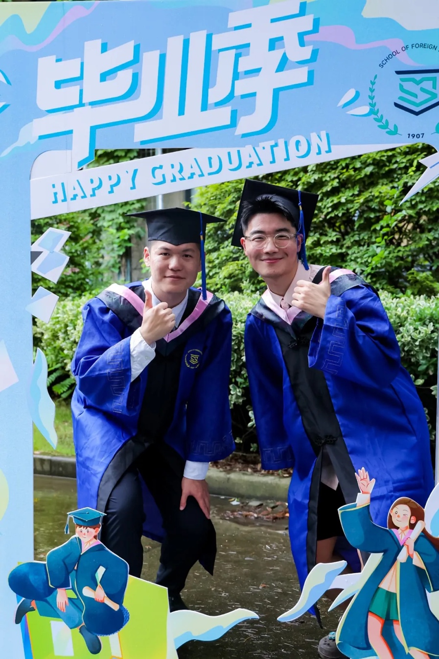 吕凡同学作为研究生毕业生代表发表毕业致辞。他认为,新时代的外语人应该通过外语向全世界发声,让全世界了解真正的中国故事,为维护世界和平稳定、促进国际社会共同发展而发声。他表示,毕业之后将进入外交部工作,将永远保持一颗赤子之心,用专业所学回报家国之恩,把服务中国外交事业的责任和使命扛在肩上。