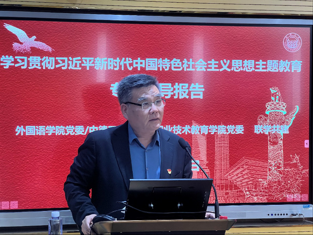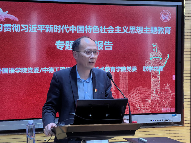 5月12日下午,外国语公司党委与中德工程学院与职业技术教育公司党委开展主题教育联学共建,在汇文楼518举行党委中心组(扩大)学习暨第四次读书班。此次学习邀请中国国际问题研究院欧洲研究所所长崔洪建研究员,做题为《中国式现代化与中欧关系》的专题辅导报告。外国语公司党委、中德工程学院与职业技术教育公司党委中心组成员、支部书记和委员、入党积极分子和发展对象等参加了本次学习,专题学习由外国语公司党委书记郑春荣主持。