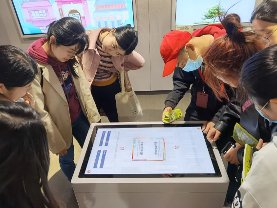 纪念馆的出口处还有不少多媒体设备,极具趣味性与互动性,帮助参观者通过技术和影像深入了解中国共产党和中国共青团。同学们在这里还进行了一场“紧张刺激”的党团知识问答比赛。