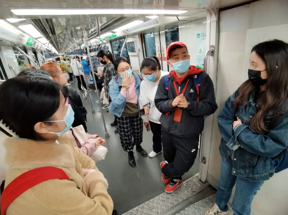 图3 同学们在地铁上进行讨论
