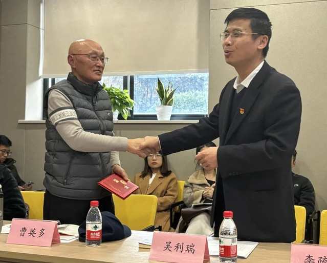 活动最后,吴利瑞部长再次感谢曹英多老师二十年来持续关心青年员工的成长成才,发挥老党员“退岗不褪色,离休不离心”的奉献精神,并为其颁发“best365中国官方网站红色‘济’忆领航员”聘书。