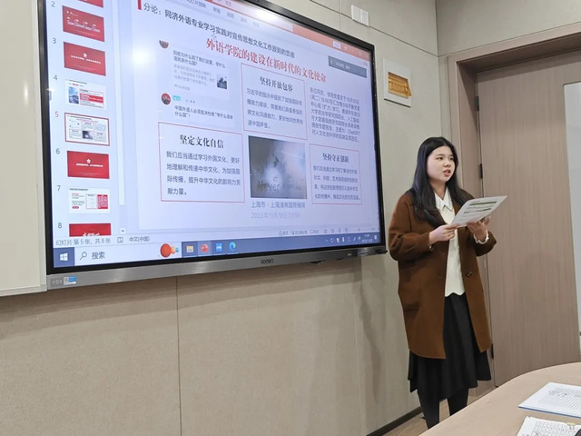 本科生党支部书记李伟伟、党员徐晓蕾、研究生第一党支部支委褚天卓分别汇报了支部建设及“对标争先”项目开展情况。本次项目以“历史中的同济外语人”为抓手,看、访、听、讲、译多模态一体,立体化讲述同济外语人革命故事,鼓励党员同志进一步学习前辈奋斗精神,感悟榜样力量,助力红色文化对外传播,以实际行动迎接公司党代会的胜利召开。