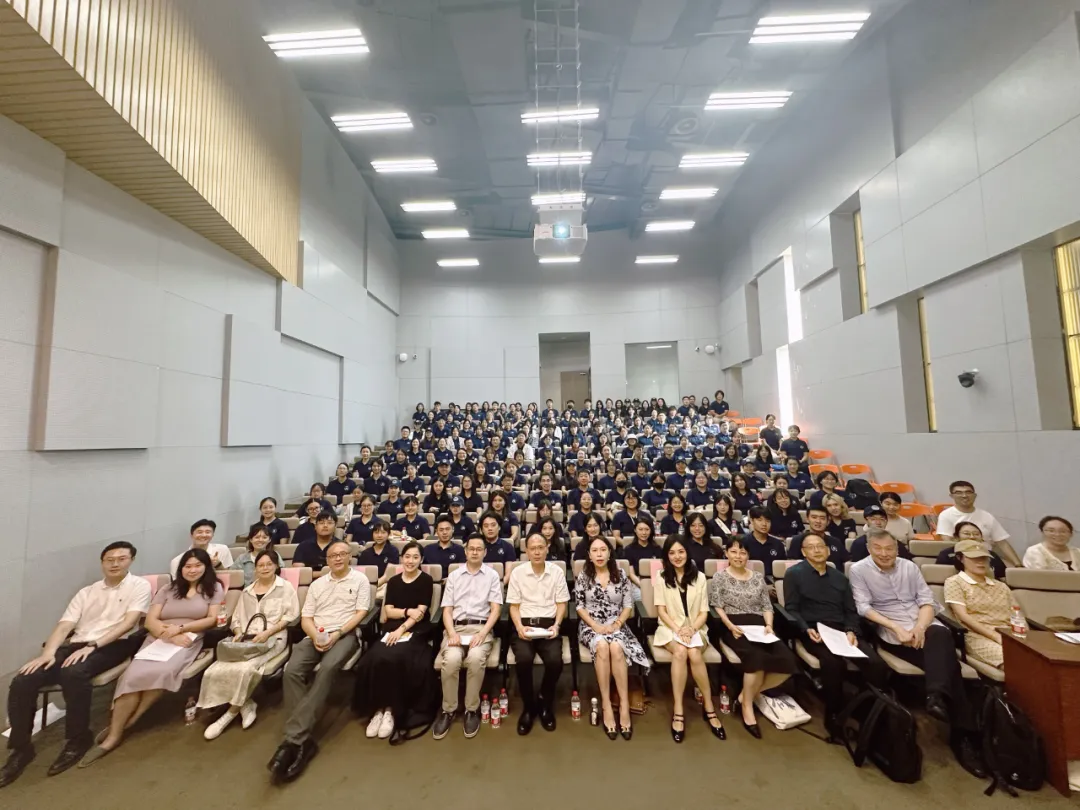 吴贇为新生作学科前沿专题报告。在报告中,她回顾了外国语言文学学科的百年发展沿革及其在同济的建设历程;介绍了外语学科在服务国别区域、国际传播、国家安全和健康中国国家战略中的建设方向与实践价值;讲解了学科布局的四大领域。她指出,新时代的同济外语人要以拓展同济的全球“朋友圈”、向世界讲好同济科技创新故事、提升同济的国际声誉和影响力为使命,在体制机制、培养路径和实践体系方面推动外语人才培养和外语专业教学改革,感知世界的广度、积累语言的厚度、洞察技术的锐度、涵养人文的温度,以院训——"Bridging Worlds through Language and Culture"为目标,不断开创未来。
