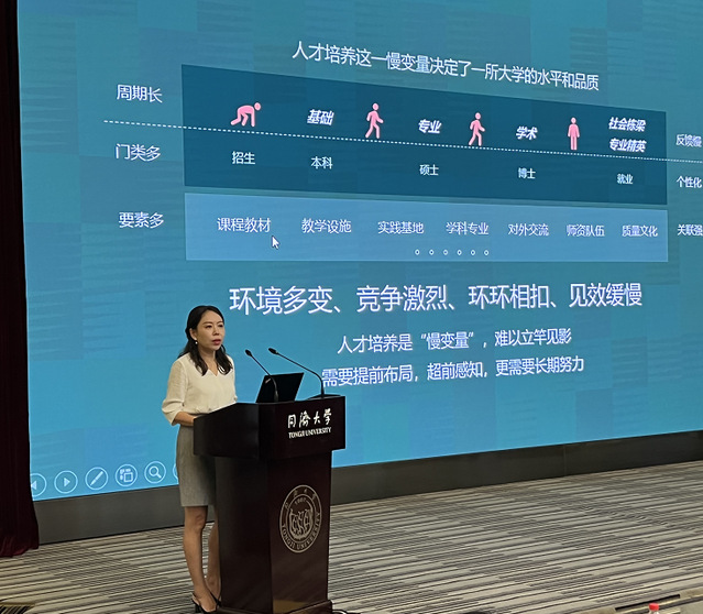 吕培明以“新形势下同济外语学科人才培养体系构建的战略思考”为题展开报告。他强调,外语学科的使命随着时代的发展不断变化,当前国际国内大环境决定了现在是外语学科转型的关键时期,学院和我们的老师们要积极对接国家战略、社会需求和学校发展,探索解决“卡脖子”“卡嗓子”问题的同时,加强同济外语的内涵建设,并且将各项工作与育人相结合,致力于培养善于主动展示自己、面向新时代新任务、精通外语的复合型人才。