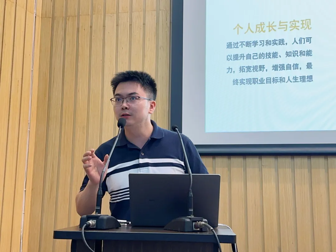 校就业指导中心综合事务部副主任肖斌文为新生作职业生涯规划专题报告。他结合当前的就业形势,为新生分析了各个阶段的重点任务,介绍了学校为同学们提供就业指导的多重渠道。他鼓励同学们知己知彼、坚定信心,为自己日后开启职业生涯打下坚实基础。