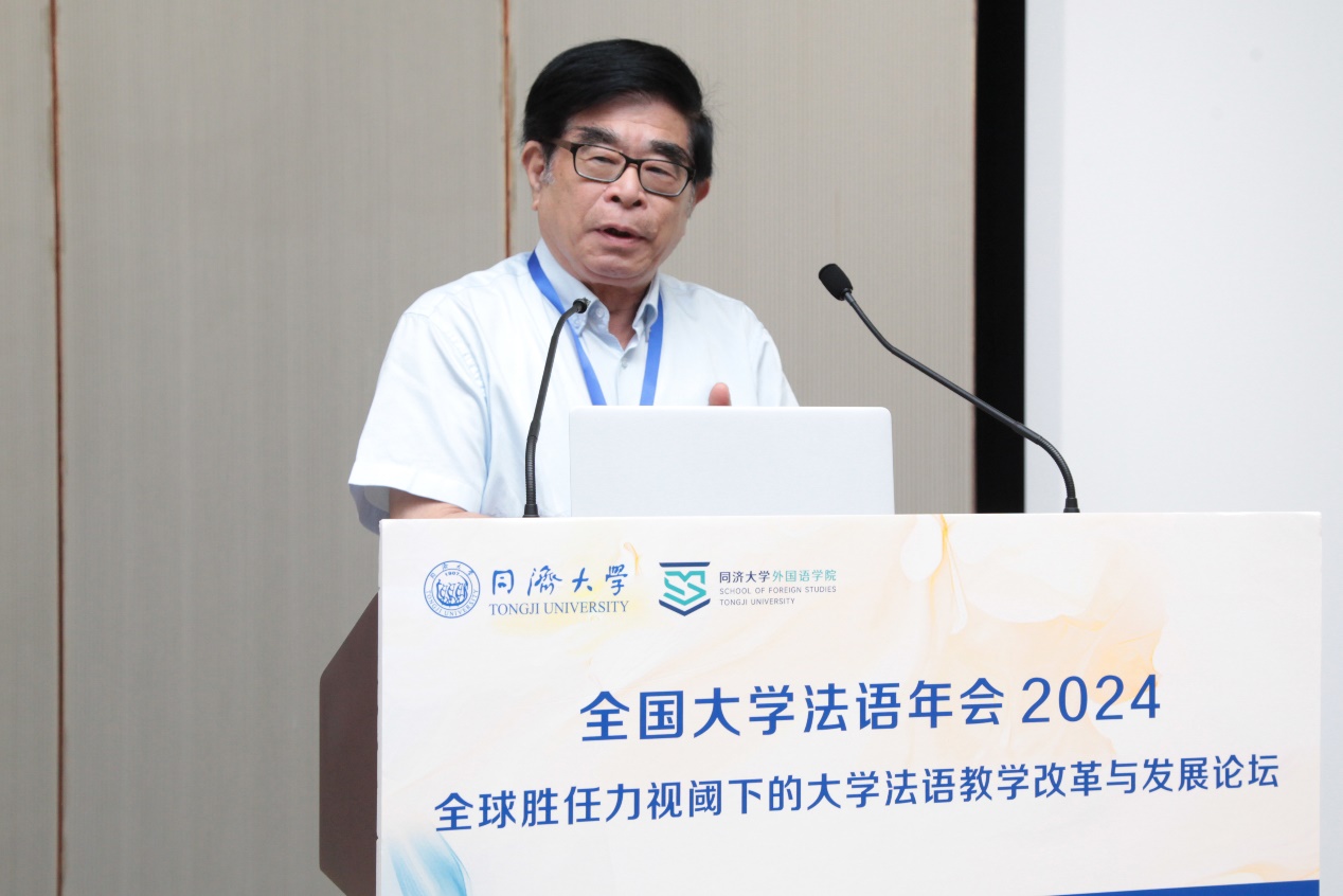 教育部大学外语教学指导委员会原副主任委员李志清教授阐述了在全球胜任力背景下,大学法语教材编写的新方向与实践;强调了将“思政”元素和“讲中国故事”融入法语教材的重要性,旨在提升员工的法语技能与全球视野。李志清教授还特别介绍了专门用途法语(FOS)系列教材的设计理念与编写思路。