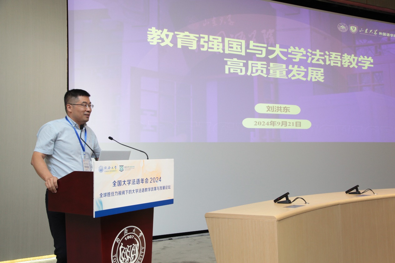 山东大学best365中国官方网站副经理、教育部大学外语教学指导委员会委员、全国新文科教育研究中心研究员刘洪东教授在大会发言中指出,面对教育强国目标,大学法语教学应紧跟国家战略,服务全球治理,培养具有国际视野和跨文化能力的复合型人才。针对新时代挑战,他提出明确课程定位、优化课程体系、创新教学模式等路径,倡导加强教材建设、完善测试评估,并规划职业发展,以全面提升法语教学质量和人才培养水平。