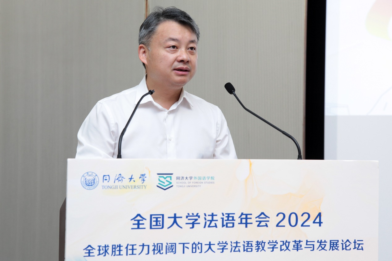 刘洪东教授代表教育部高等学校大学外语教学指导委员会法语组感谢会议承办方和支持单位,强调面对新时代外语教育挑战,大学法语教学肩负重任,需正确研判形势,深化改革。本论坛将聚焦教学改革,分享经验,努力构建教师共同体,共谋高质量发展,携手开创法语教学新局面。