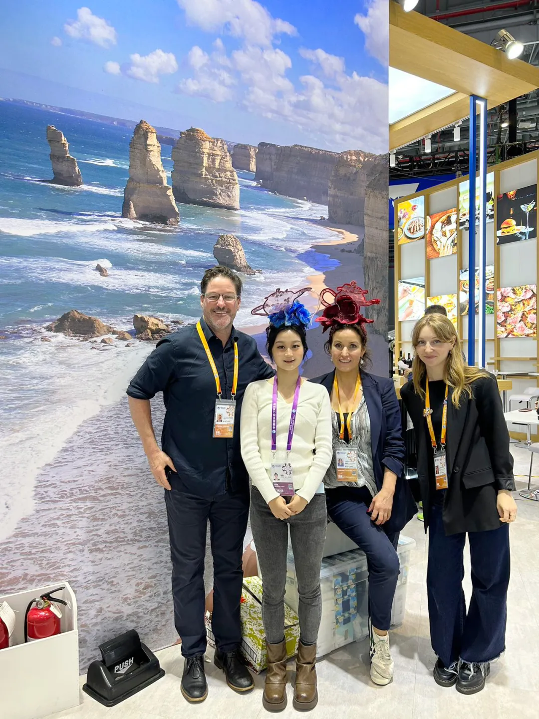 自2018年首届进博会创办以来,澳大利亚的维多利亚州政府一直积极支持维州企业参加。今年,他们携手62家维州优秀的食品与饮品企业参加第七届进博会,在食品与农产品馆建造300.06平米的维多利亚州政府展馆,展馆设计突出维州特色元素,以海洋与陆地为基调,重点突出维多利亚州在食品,乳制品,饮品类的生产实力。本次进博会期间,维州政府在展馆举行了一系列产品展示,优质食材烹饪及品尝活动,将其明星产品及最新产品给到中国消费者,公司宋燕同学作为澳大利亚展台的翻译人员之一,与其他志愿者、工作人员和参展商紧密合作,共同完成翻译和接待任务,为此次国际盛会贡献力量。