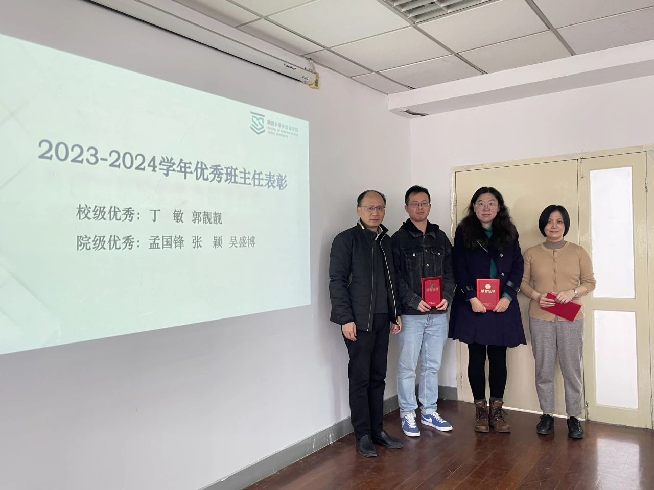 会议对上一学年考核优秀的班主任进行了表彰,郑春荣为获得校级和院级优秀称号的班主任颁发了证书。