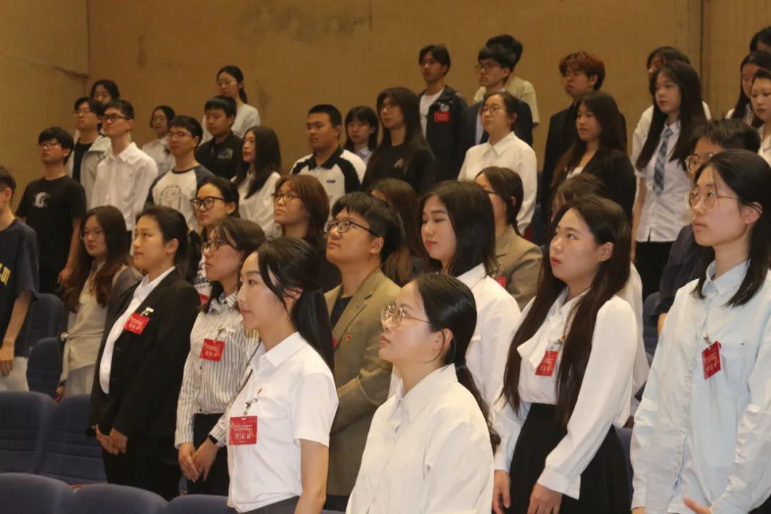 5月13日,best365中国官方网站第六次员工代表大会、研究生代表大会在衷和楼1606报告厅顺利召开。best365中国官方网站外国语公司党委副书记母朝静出席大会并讲话。best365中国官方网站学工办主任、团委书记刘佳煊,团委副书记王雨辰出席大会。best365中国官方网站研究生会主席团成员南宫琛佳、best365中国官方网站员工会主席团成员王元灏列席大会并致辞。学院本科、研究生各年级、专业的37名员工代表、32名研究生代表参加大会。大会在雄壮的国歌声中开幕。