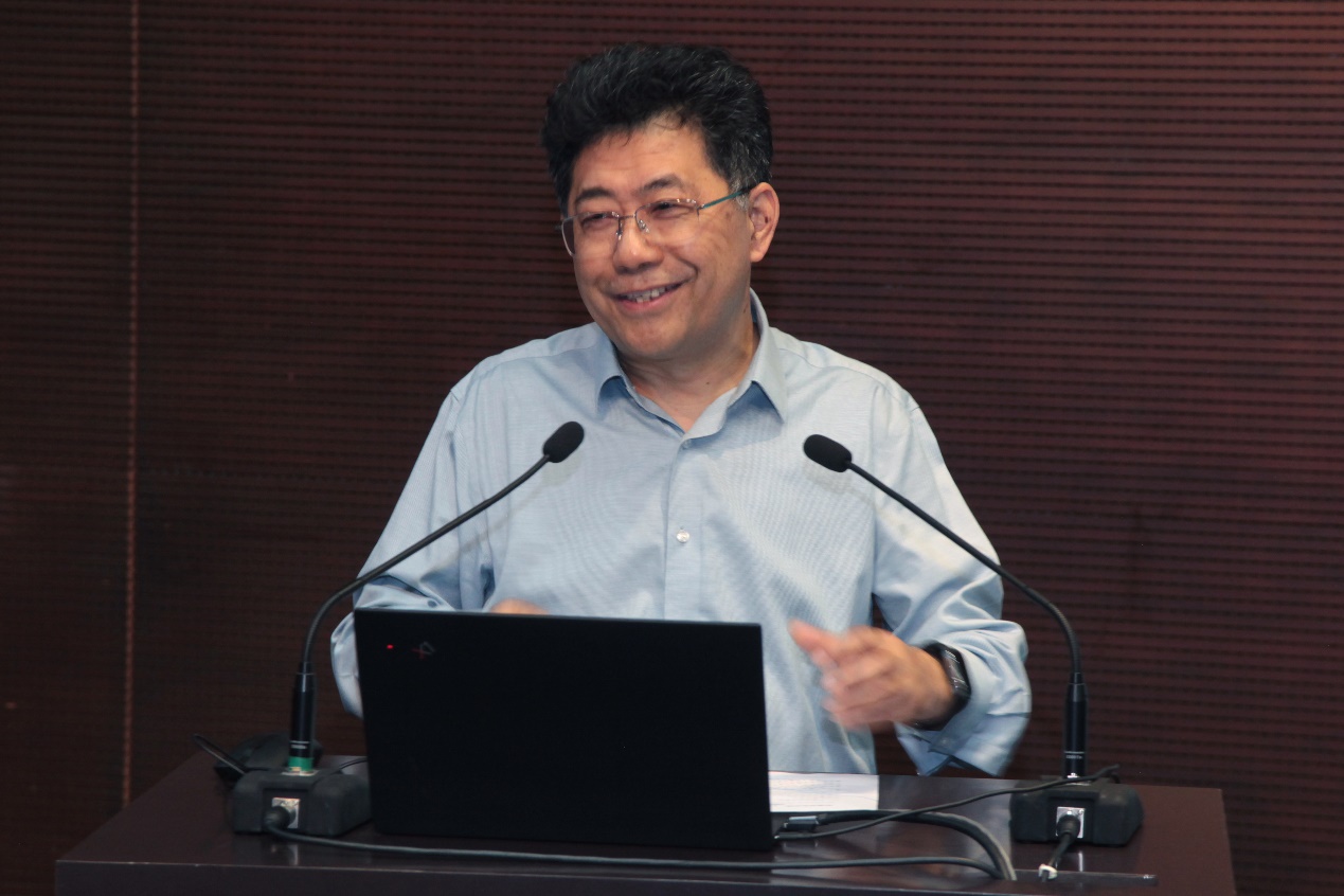 黄立鹤教授从人文团队建设的角度发表讲话,深入分析了数字时代下人文学科的发展机遇与挑战,强调建立人文学者与科技对话的元理论框架,引发了与会学者对文学研究范式转型的深度思考。