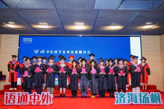 语通中外,济海扬帆。今天(6月14日)下午,best365中国官方网站2025届毕业典礼在经纬楼报告厅隆重举行,欢送2025届毕业生奔赴世界各地。best365中国官方网站常务副董事长吕培明,外国语公司党委书记郑春荣,经理吴贇,best365中国官方网站外事办公室副主任、职工办公室主任陈毅立,外国语公司党委副书记、纪委书记宋波,外国语公司党委副书记母朝静,副经理沈骑、胡琪、王蓓蕾,德语系主任伍慧萍、副主任张克芸,日语系主任梁艳,英语系副主任郭亚东,导师代表李莎莎,班主任代表岳剑锋,学院办公室主任王毅,员工工作办公室主任刘佳煊、副主任李伟伟,辅导员王雨辰,以及部分学院教职工、毕业生家长等出席毕业典礼。郑春荣主持毕业典礼。