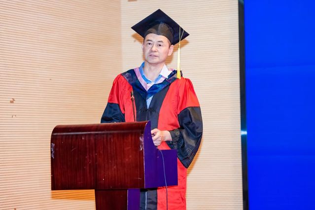 吴贇代表学院全体教师,向顺利完成学业、即将踏上新征程的2025届毕业生致以诚挚的祝贺,向为毕业生成长成才辛勤付出的家长表示衷心感谢。她在致辞中指出,人工智能以前所未有的速度席卷而来,我们要重新思考并认识什么才是真正属于人的、不可替代的价值。她强调,真正的竞争,不只是“技术的更快”,而是“人机协作的更好”,要把综合的思辨力、人文的判断力和跨界的创造力作为自己的核心竞争力。她向毕业生提出了三点希望:一是永远保有提问的勇气,敢于追问“为什么”和“是否还有其他可能”;二是永远保有辩证思考的能力,在纷繁的信息中识破偏见,在表象背后洞察真相;三是保有选择的自由,在多种声音中做出价值判断,在多种可能中坚持信念,在不确定中保有人格的清晰。她祝福毕业生前程似锦,归来仍是少年。