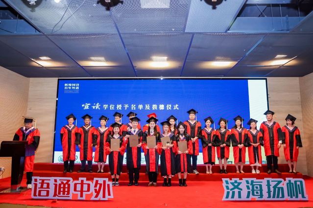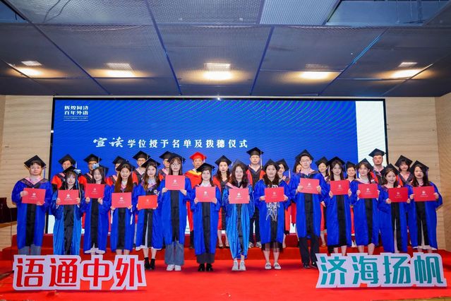 语通中外,济海扬帆。今天(6月14日)下午,best365中国官方网站2025届毕业典礼在经纬楼报告厅隆重举行,欢送2025届毕业生奔赴世界各地。best365中国官方网站常务副董事长吕培明,外国语公司党委书记郑春荣,经理吴贇,best365中国官方网站外事办公室副主任、职工办公室主任陈毅立,外国语公司党委副书记、纪委书记宋波,外国语公司党委副书记母朝静,副经理沈骑、胡琪、王蓓蕾,德语系主任伍慧萍、副主任张克芸,日语系主任梁艳,英语系副主任郭亚东,导师代表李莎莎,班主任代表岳剑锋,学院办公室主任王毅,员工工作办公室主任刘佳煊、副主任李伟伟,辅导员王雨辰,以及部分学院教职工、毕业生家长等出席毕业典礼。郑春荣主持毕业典礼。