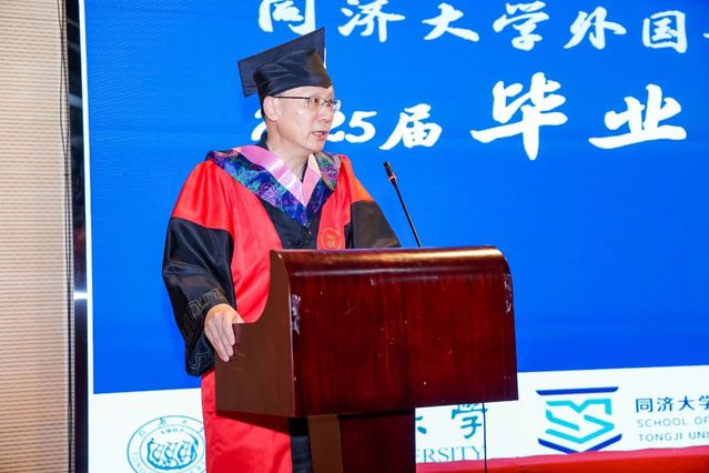 李莎莎作为教师代表发言。她指出,“同济天下”承载着同济人超越小我的格局与情怀,是深植于同济人血脉的精神内核。真正的自我负责,从来都生长在与时代共振的担当之中。她希望毕业生用宏大滋养智慧,用责任唤醒担当,努力冲破内耗与琐碎。她祝福毕业生以“乘风好去,长空万里,直下看山河”的意气风发,奔赴人生的星辰大海。