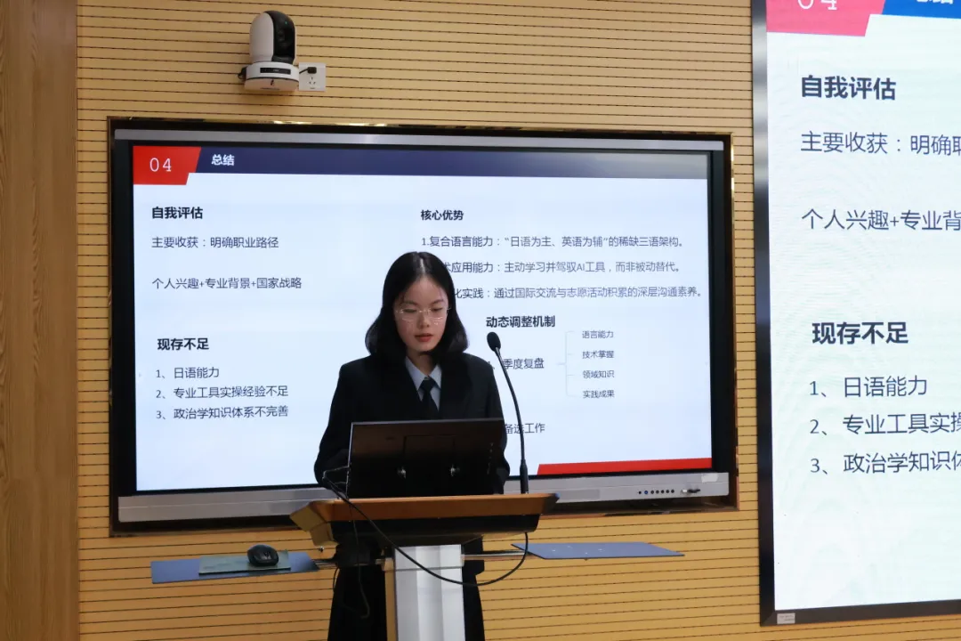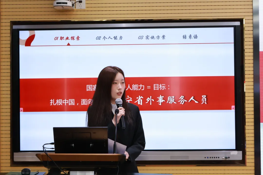 比赛过程中,成长赛道和就业赛道的10名选手分别围绕自身的职业目标做生涯发展展示和求职综合展示。主题展示紧扣职业成长轨迹、职业发展目标和未来求职意向,并将个人理想与国家需要、经济社会发展紧密结合,充分展现了外院学子积极进取、努力奋斗的精神面貌和“以语为桥、沟通世界”的外语人担当。