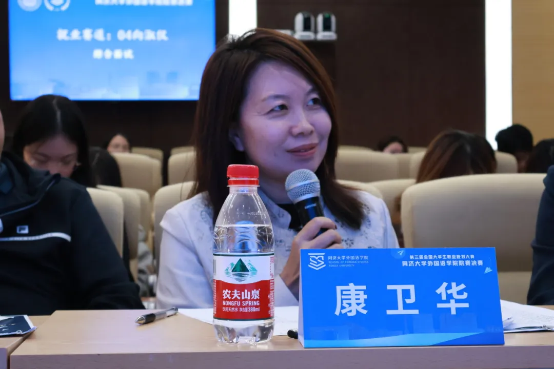 赛后康卫华评委、曹琰评委对选手表现进行专业点评。康卫华指出员工在做职业规划时应对行业前景与市场环境具备敏锐的感知力与洞察力,做到职业发展规划与前期实习积累相结合。她认为外语专业具备独特的优势,拥有不设限的视野,鼓励同学们发挥自身能力,胜任多元岗位。曹琰指出外院学子应借助语言优势,探索多元发展空间,走出跨学科、跨国别、跨文化的职业发展道路;同时希望同学们重视数智化赋能,成为无所不能的求职者。