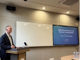 随后,Steve Mann以轻松而富有启发性的语言展开了他的主题报告。他首先阐释了“反思性实践(Reflective Practice)”的核心内涵——即教师在教学过程中通过自我观察、数据分析与同行交流,实现持续的专业成长。Mann指出,“教育的最高馈赠,不是知识本身,而是反思与提问的习惯”。他认为,无论教学对象是本科生、研究生还是职前教师,教育的根本任务都是引导学习者形成自主反思与批判性思维的能力。他通过课堂实例说明,教师应在教学过程中实时感知员工反应,适时调整教学节奏与方法,以提升课堂互动与学习效果。