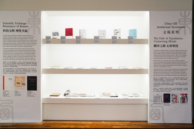 本次展览聚焦“汉字与字母的对话”,以“文苑英华”“翻开中国”“饰韵汉字”“汉字焕新”四个章节为主线,依托沉浸式空间、创意装置与设计作品,系统体现了汉字的文化底蕴与视觉张力,讲述文字如何作为文明载体在中英两国间架设理解与共鸣的桥梁。其中,“文苑英华”呈现汉字起源与演变,回望文字与中英人文交流的不解之缘;“翻开中国”聚焦汉字在当代书籍设计中的图文表达,展示字体与排版如何成为“打开中国”的文化钥匙;“饰韵汉字”则将汉字元素融入日常生活的服饰、饰品与工艺设计中,展现文字之美如何以具象形式延伸至生活细节;而“汉字焕新”面向未来,探索汉字在数字与交互语境下的共振轨迹。