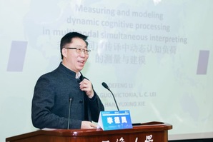 澳门大学李德凤院士以“眼动追踪多法融合:多模态同声传译中动态认知负荷的测量与建模”为题,通过眼动追踪、瞳孔测量等多维度研究方法,揭示了在“语音+投影片+实时字幕”并存的多模态口译场景下,认知负荷的动态波动规律,提出“时间敏感认知处理框架”,为口译技术优化与精准干预提供了理论依据。