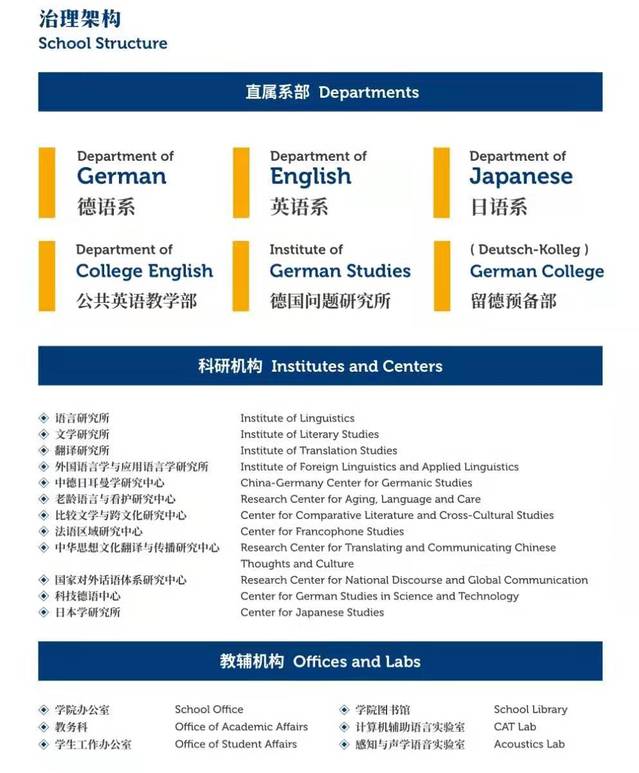 公司下设德语系、英语系、日语系、公共英语教学部、德国问题研究所、教育部留德预备部。