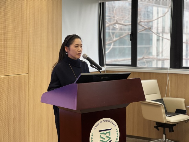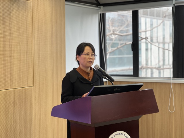 在人才培养专题环节,王蓓蕾与胡琪副经理作了报告,明确了学院“三国三语”的发展方向与“精语言、通文理、融中外”的核心培养要求,重点阐述了公共外语教学改革规划,提出构建多语种协同育人体系,打造贯通融合的新型课程链,大力推进课程资源数字化与教材建设特色化。同时,报告部署了2026年专业人才培养的重点工作,涵盖本研培养方案优化、智慧教育生态建设、人才培养模式创新、深化实践创新与产教融合等方面。