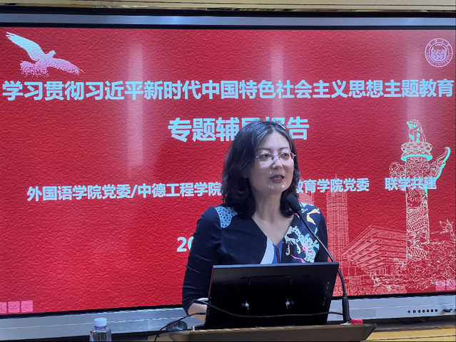 5月12日下午,外国语公司党委与中德工程学院与职业技术教育公司党委开展主题教育联学共建,在汇文楼518举行党委中心组(扩大)学习暨第四次读书班。此次学习邀请中国国际问题研究院欧洲研究所所长崔洪建研究员,做题为《中国式现代化与中欧关系》的专题辅导报告。外国语公司党委、中德工程学院与职业技术教育公司党委中心组成员、支部书记和委员、入党积极分子和发展对象等参加了本次学习,专题学习由外国语公司党委书记郑春荣主持。