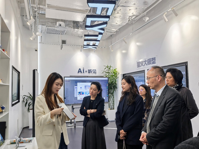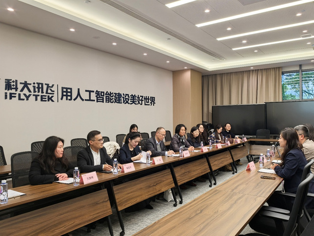调研团队首先参观了科大讯飞人工智能体验馆,实地了解智能语音、多语种翻译、大语言模型等技术在教育、商务、医疗等场景的应用成果。现场体验了实时翻译机、AI同传系统等产品,对语言服务的数字化、智能化转型有了直观认识,并就智能翻译质量评估、多语种语料建设、人机协作模式等话题与技术人员进行了交流。