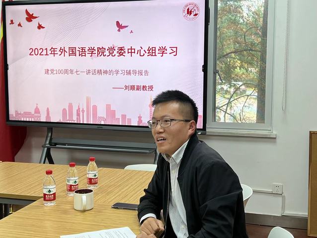 10月26日下午,公司党委理论学习中心组在同文楼216举行专题学习,邀请马克思主义学院刘顺副教授作了题为《自信自强 守正创新》的专题辅导报告。此次专题学习由外国语公司党委副书记、经理吴贇主持。
