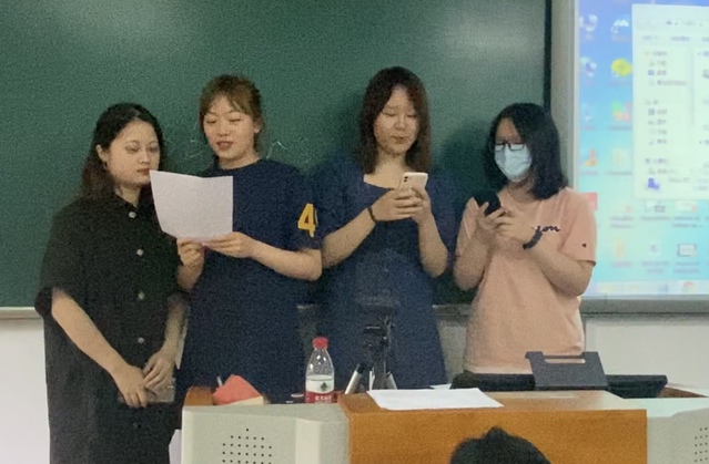 作为一个作业项目,2019级英语专业1班和2班的员工分组在课后进行翻译,教师反馈修改意见,同学们进行完善后在课堂进行演唱。在中国共产党百年华诞之际,董琇教授带领2019级英语2班同学进行集体演唱,歌唱党,歌唱祖国,抒发红色激情,传承红色基因,从红色歌曲中汲取奋进的力量。鉴于同学们对红色歌曲的“翻唱”表现出了浓厚的兴趣,教师将在下学期的翻译课程中对中文歌曲的外译进一步展开讲解和训练。