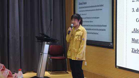 赵劲教授赞扬了选手的表现,并希望同学们以这次比赛为契机,做好中国故事的讲述者。她希望“德语之星”大赛今后能够进一步扩大影响力,让更多德语学习者领略到德语学习的趣味与魅力。