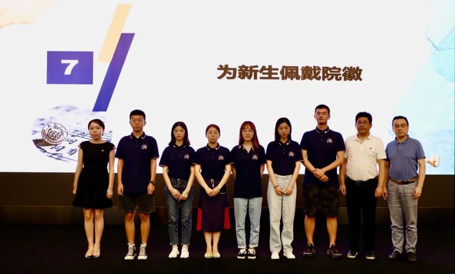 典礼最后,吕培明、谭晓赟、吴贇一同为新生代表佩戴院徽,勉励广大同学牢记同济精神,谨记外语使命,在时代发展的洪流中砥砺前行。