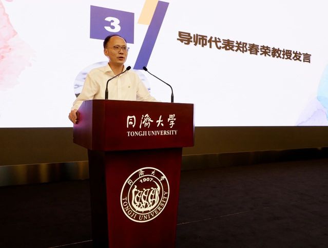 郑春荣代表研究生导师发言。他对同学们提出了“勤读”、“勤思”、“勤为”的殷切期望,并结合同济外院德语专业历史发展以及自己的研究领域,告诉同学们只有肯读书、勤思考、敢作为,才能收获学术的果实。他希望同学们能够在导师的带领下不断尝试,全面发展,找到属于自己的学术空间和人生道路。