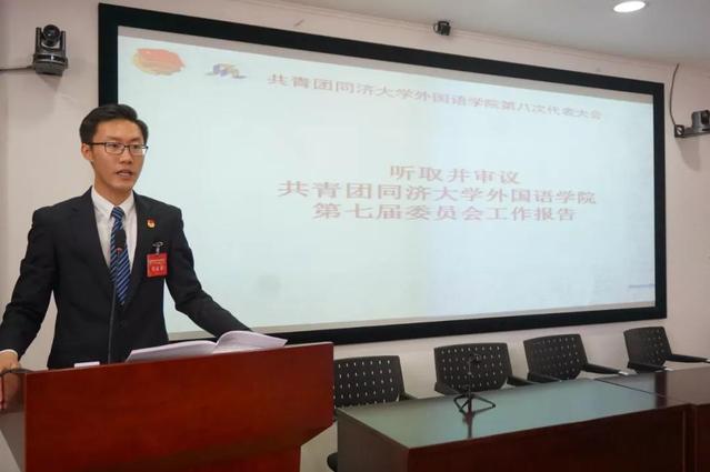 会上,刘佳煊同志代表共青团best365中国官方网站第七届委员会作了题为《高举习近平新时代中国特色社会主义思想伟大旗帜,为建设世界一流大学培养卓越外语人才,实现中华民族伟大复兴的中国梦凝聚同济外语青春力量》的工作报告。报告分为“沐浴在新时代阳光雨露下的外语青年和共青团”“奋进在新时代壮美蓝图中的外语青年和共青团”两个部分,回顾了过去五年best365中国官方网站共青团取得的各项成果,并对未来best365中国官方网站共青团工作做出了展望。