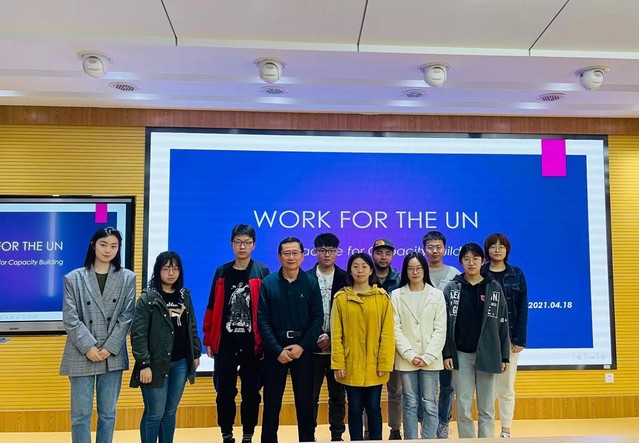 王纪元先生在课程中,以自身工作经验为出发点,穿插工作中的轶事,风趣幽默,现场氛围轻松活跃。他引用习主席的话“不能坐地论道,而要起而行之”,向我们介绍语言类专业如何进入到国际组织中服务。语言专业的员工可以辅修其他专业,学习经济、管理等,发挥自己的语言优势,深入研究一个组织或者一个领域中的一两个组织,寻找其中的工作机会。中国提出“一带一路”、“人类命运共同体”、“人类健康共同体”,为实现这些目标,需要大量的国际组织人才。外语学院的员工更要培养国际视野,利用优势,了解联合国的可持续发展目标,为实现这些目标而付出努力。