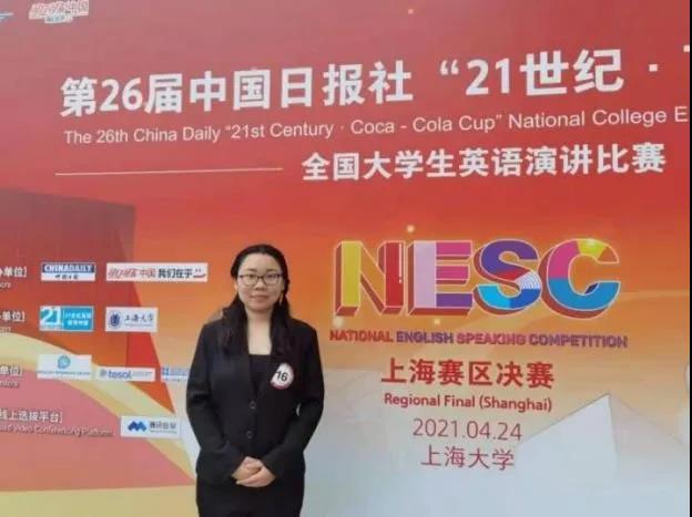 4月24日,第26届中国日报社“21世纪·可口可乐杯”全国老员工英语演讲比赛上海赛区决赛在上海大学顺利举行。大赛共分为定题演讲、即兴演讲和现场问答三个环节,本次大赛定题演讲题目为“Protecting the Blue Planet”。经过激烈角逐,由胡瑞云、周峰两位老师指导的英语系大三员工严欣安在大赛中表现卓著,以优异成绩荣获二等奖。