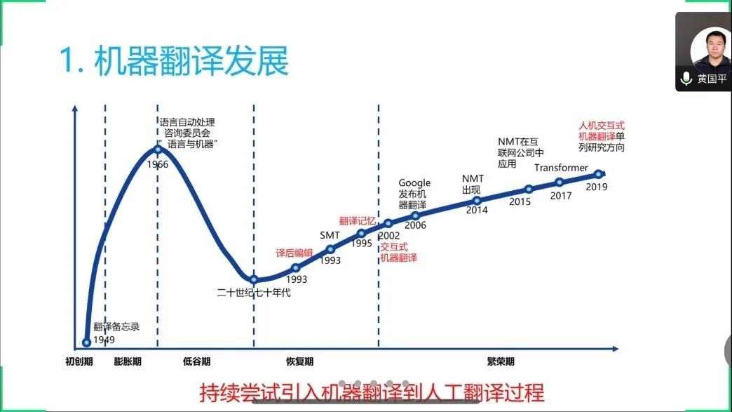 纵观整个发展过程,机器翻译研究是一个研究者持续尝试将机器翻译引入人工翻译的过程。因此,面对现今对于“机器翻译是否会取代人工翻译”的议论,黄国平博士给出了否定的答案。