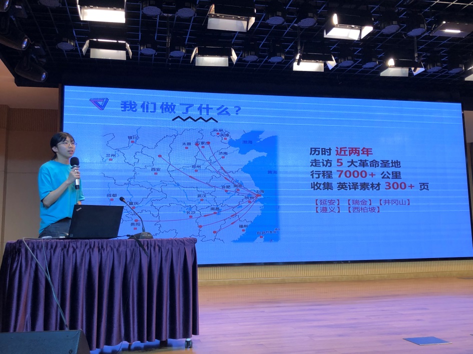 金琦同学最后更是通过向同学们介绍“红色济译”团队是如何通过发现红色场馆中的翻译小问题,通过思考、探索,分析问题,和团队成员一起团结协作,最后一同解决问题这样一个过程,向孩子们传递了“发现问题、分析问题、解决问题”的科学探索思路。她还向大家介绍了团队的具体研究成果,与大家探讨了科学研究报告的意义。