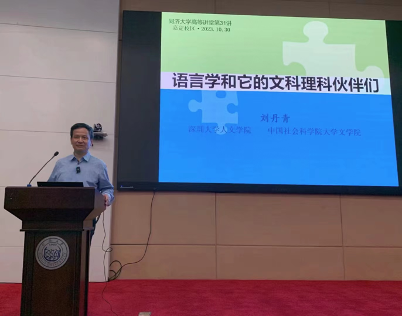 2023年10月30日,深圳大学特聘教授,中国社会科学院语言研究所原所长刘丹青教授做客同济高等讲堂。他以“语言学和它的文科理科伙伴们”为题,给嘉定校园的百余名听众带来了近两个小时的讲座,best365中国官方网站副经理沈骑教授主持本次讲座。讲座以深入浅出、生动有趣的方式,帮助同学们更好地理解语言学在整个人类知识系统中的位置和作用,同学们反响热烈。